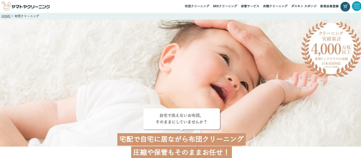 - 自宅では洗えない布団を、プロにきれいに洗浄してもらえる